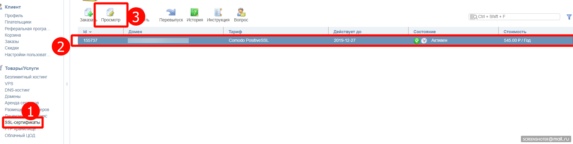 (не путать с биллингом/личным кабинетом который находится по адресу https://cp.smartape.ru/billmgr?lang=ru) и нажать в левом меню пункт «SSL-сертификаты»