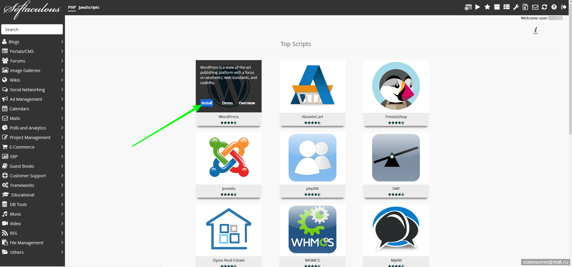 2. Выбираем CMS Wordpress для установки, нажимаем Install